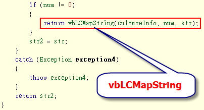 先來看一下 StrConv 方法反向工程之後的一小部分程式碼(還沒到重點, 所以只節錄最後幾行),